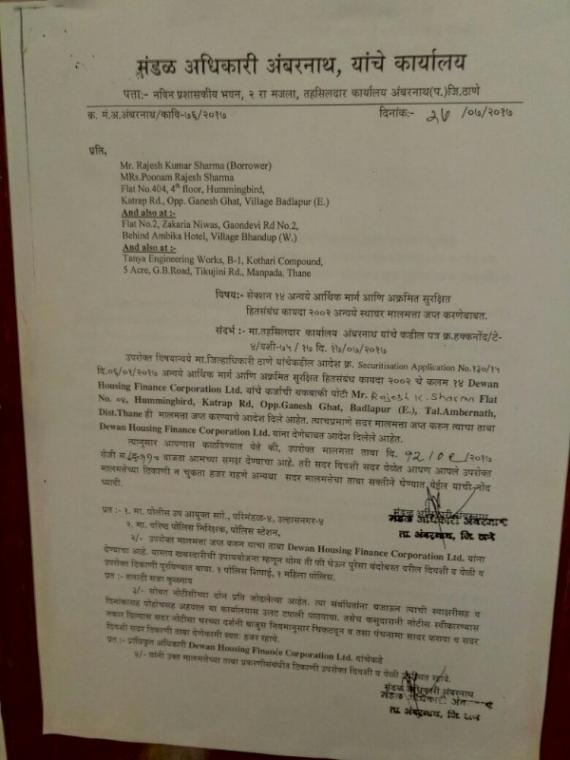 4. H/Flat No.404 , Floor No. 4th , Hummingbird , Sector. Katrap Road Opp. Ganesh Ghat , Village . Badlapur east Thane Maharashtra 421504 RP - 18,25,750/-